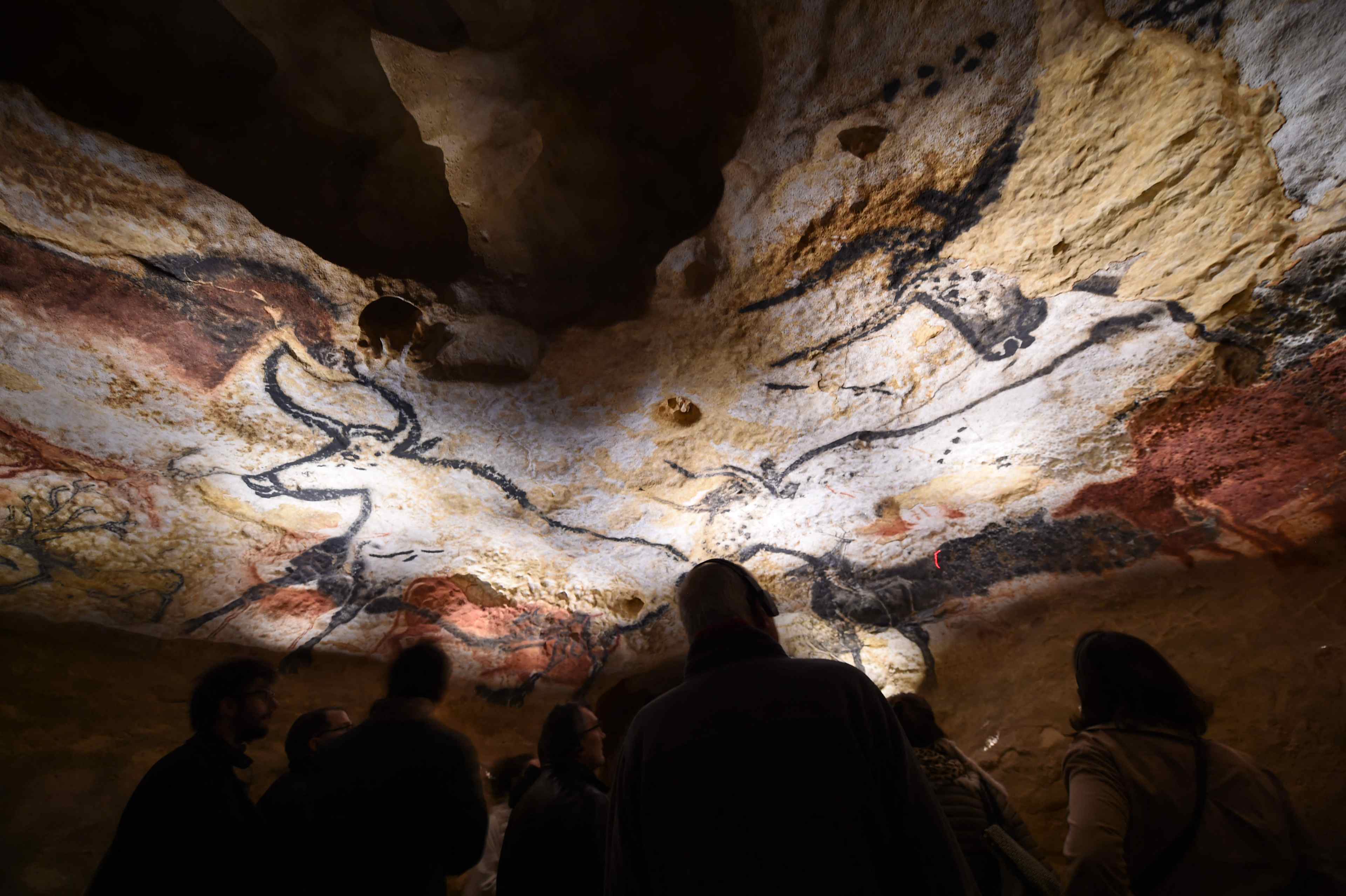 TOPSHOT - People visit the new replica of the Lascaux cave paintings, during the first public opening on December 15, 2016 in Montignac, in the Dordogne region of southwest France, more than seven decades after the prehistoric art was first discovered. (Photo by MEHDI FEDOUACH / AFP) (Photo by MEHDI FEDOUACH/AFP via Getty Images)