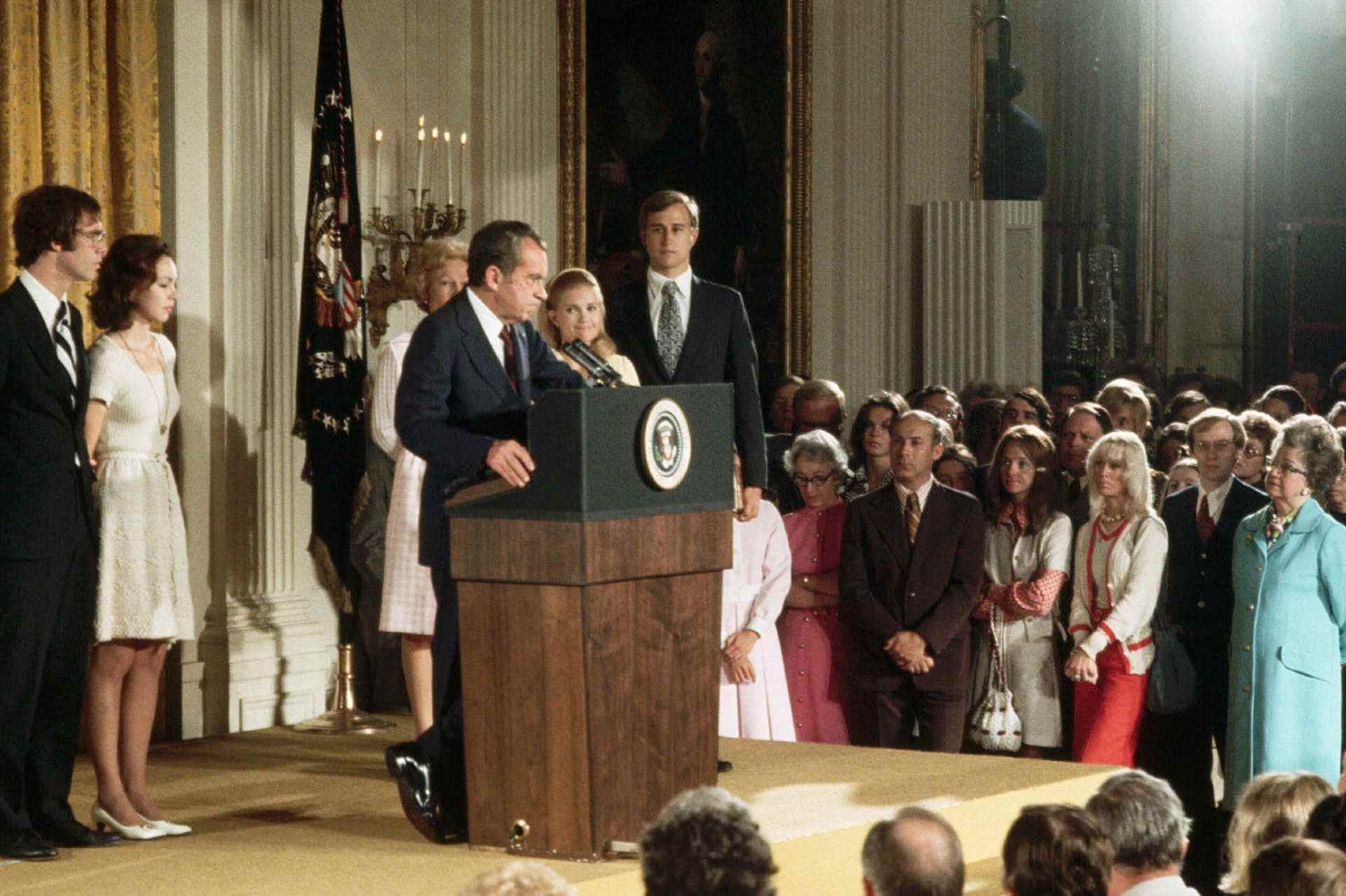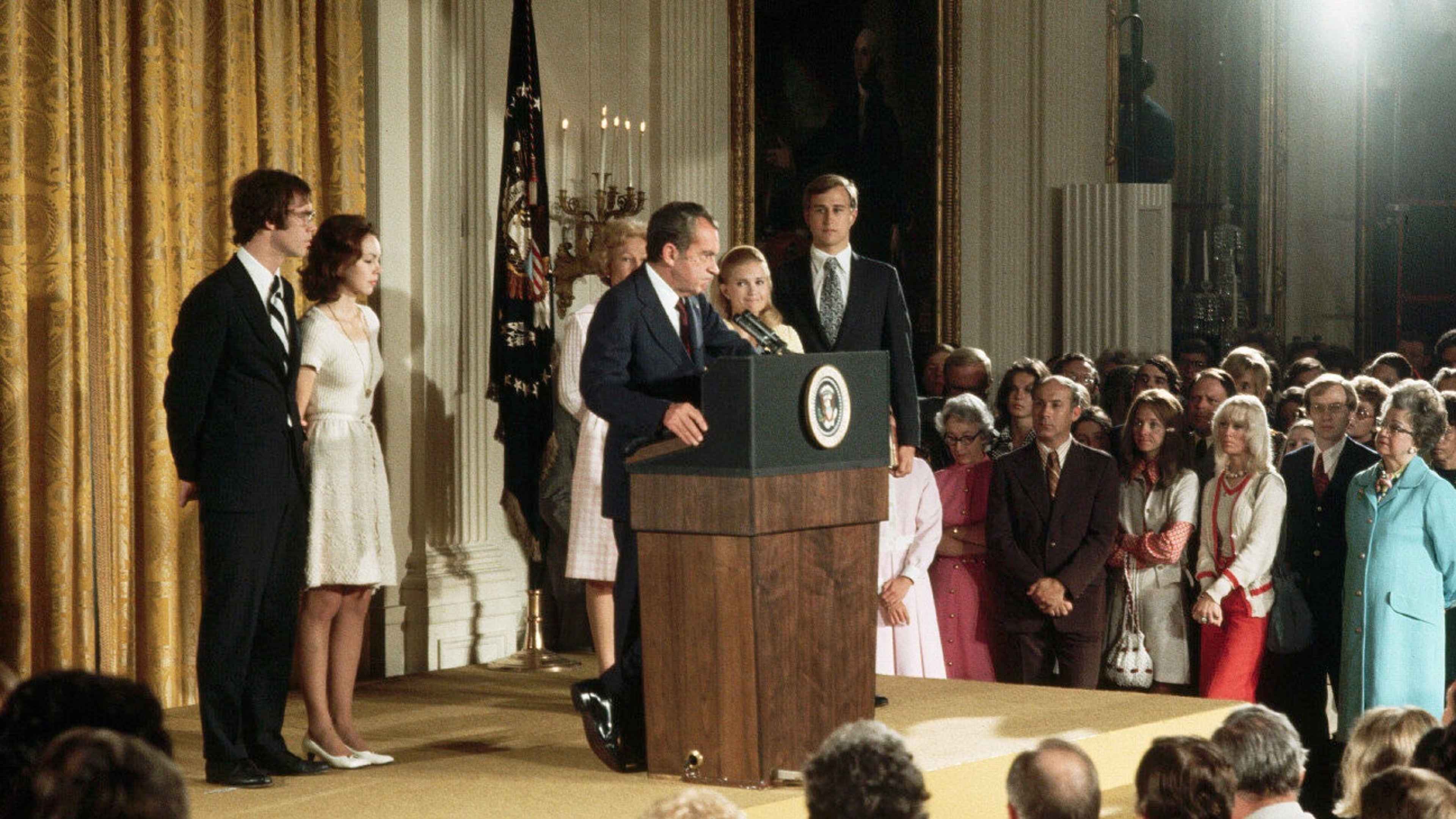 President Richard Nixon with the Watergate tapes, 1974.