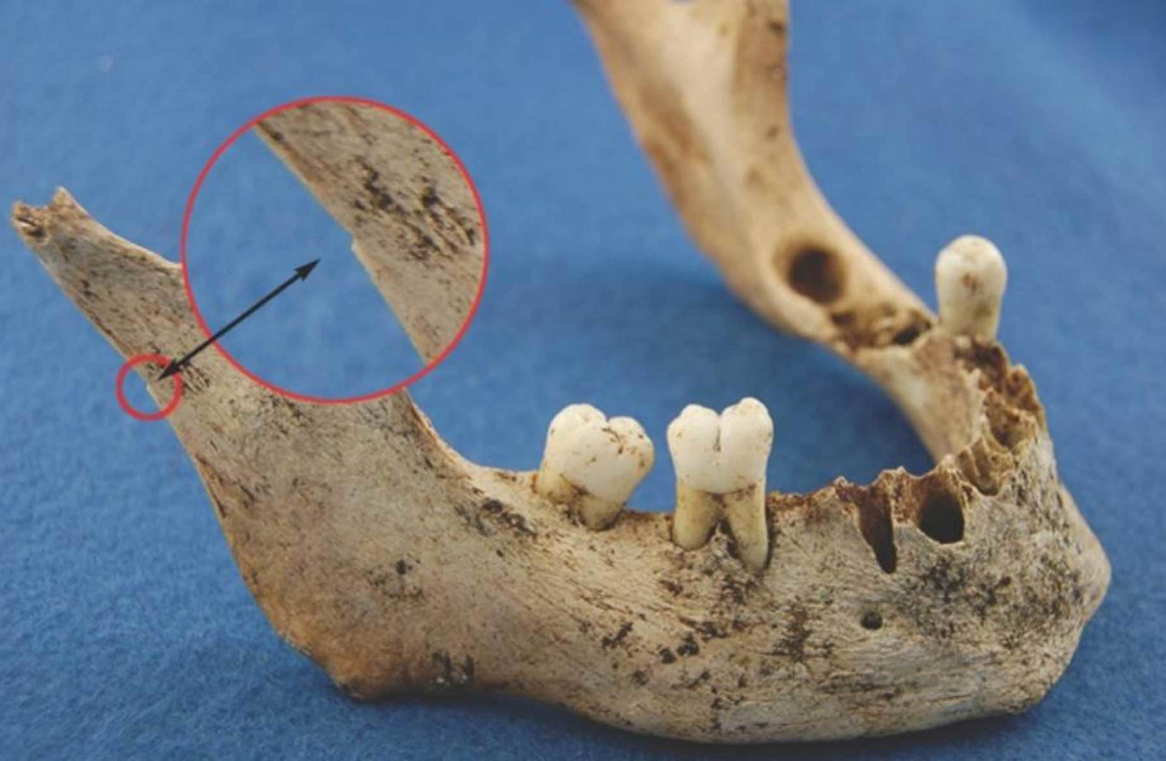 A mandible recovered from the Franklin expedition shows a cut mark consistent with cannibalism.