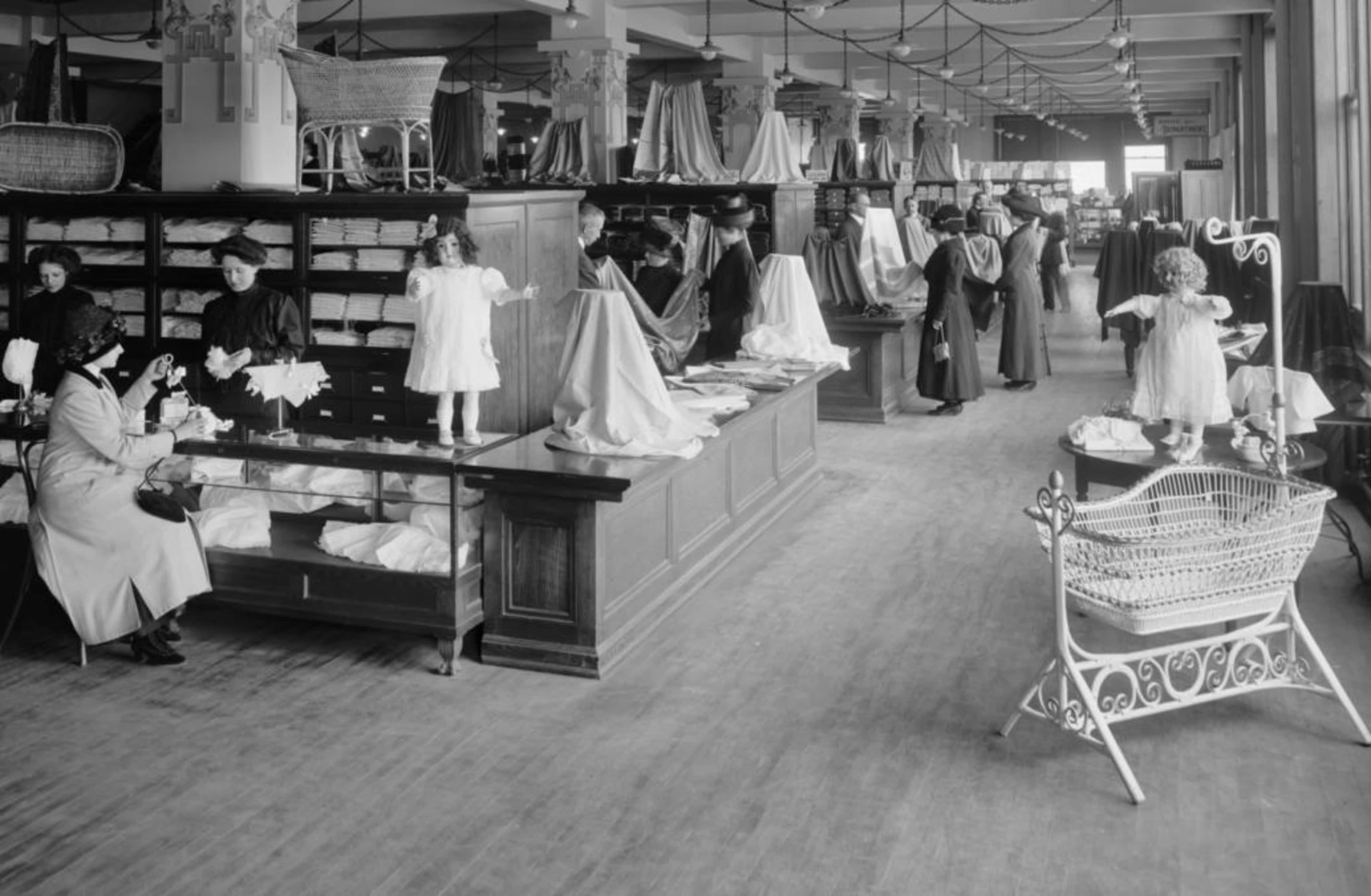 But in the middle of the 19th century, industrialization began to change the kinds of products available, bringing more variety and more consumer goods, like disposable trinkets and mass-produced clothing, into stores. More products created a need for more buyers to sustain a new consumer economy. In response, stores decided to target a novel market: the prosperous woman. If women were given a socially acceptable, safe place to shop, retailers reasoned, they would learn about and buy new products.
