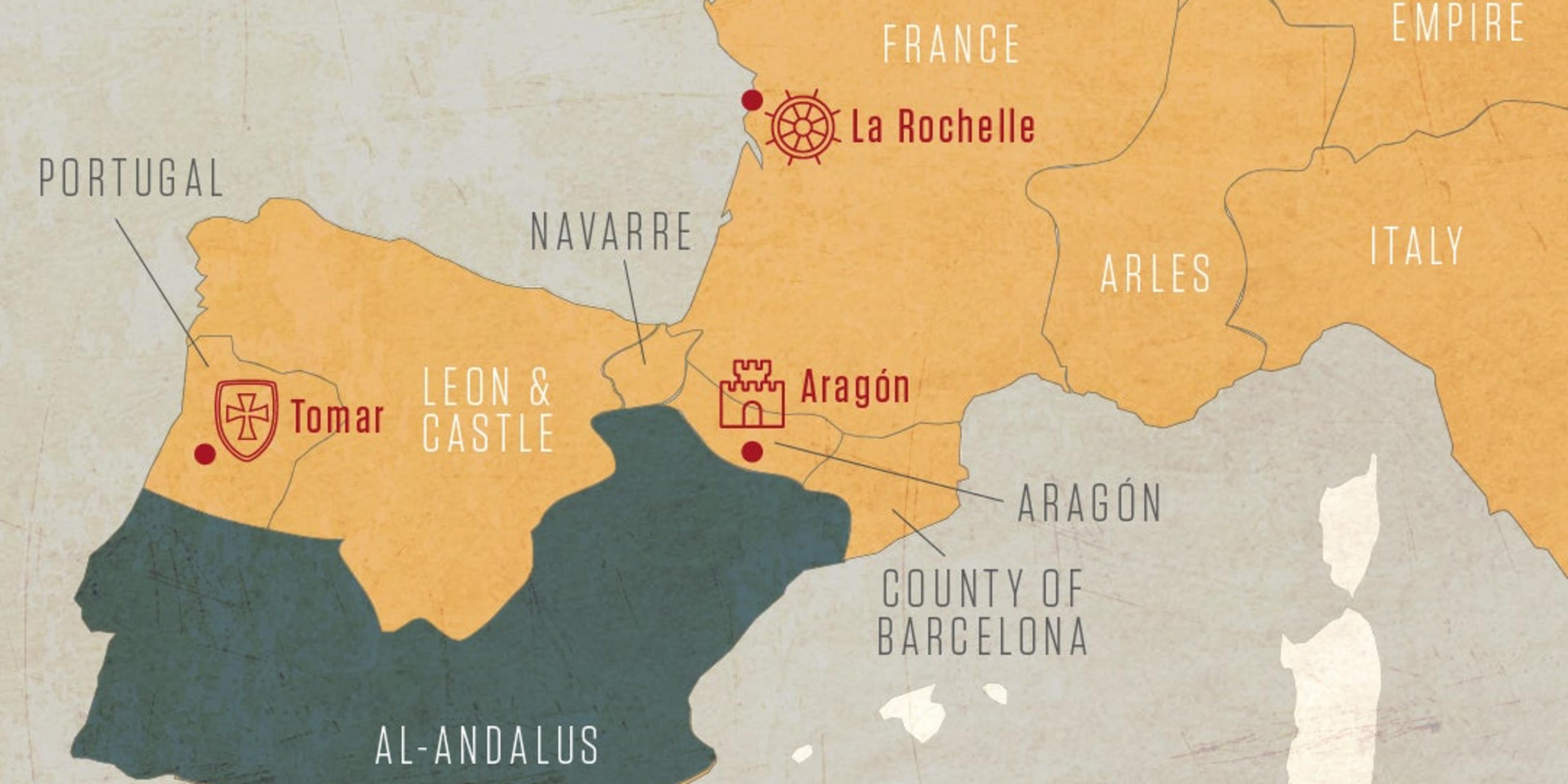 Aragón was a key Western province for the Templars and the birthplace of several of Grand Masters. It was also a live crusading theatre in the so-called Reconquista, in which Christian kings battled against Islamic emirs known as Moors, who occupied southern Spain. From the 1130s onward, the Templars garrisoned numerous large fortresses, including Monzón and Miravet, and threw themselves into this struggle. As Templar influence grew, they served as diplomats and mediators between Aragon’s rulers and the Church, and as tutors to the royal family.