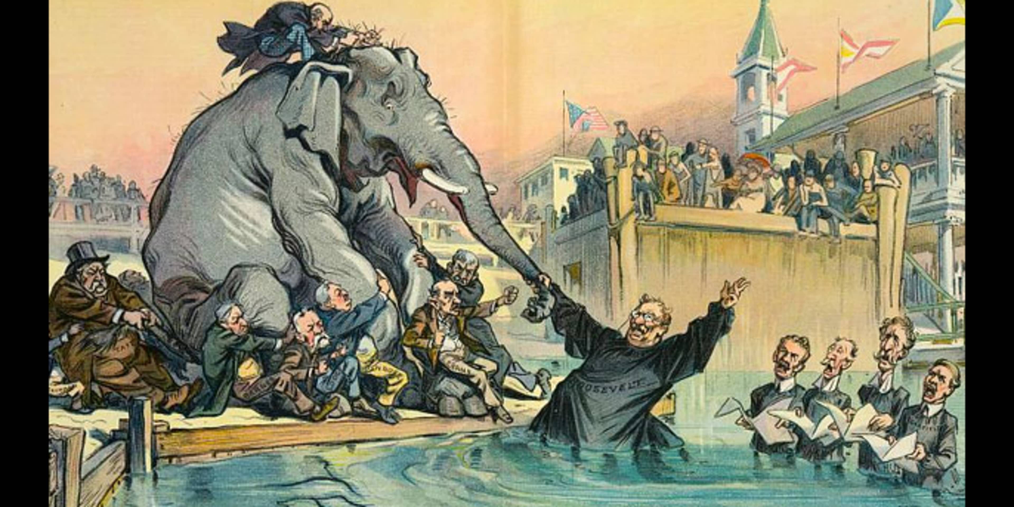 Though Roosevelt won most of the primaries, he came up short of delegates at the tumultuous Republican National Convention in Chicago, prompting him and his supporters to storm out. They then reconvened across town and formed the Progressive Party, nicknamed the Bull Moose Party because Roosevelt said he felt as fit as a bull moose.