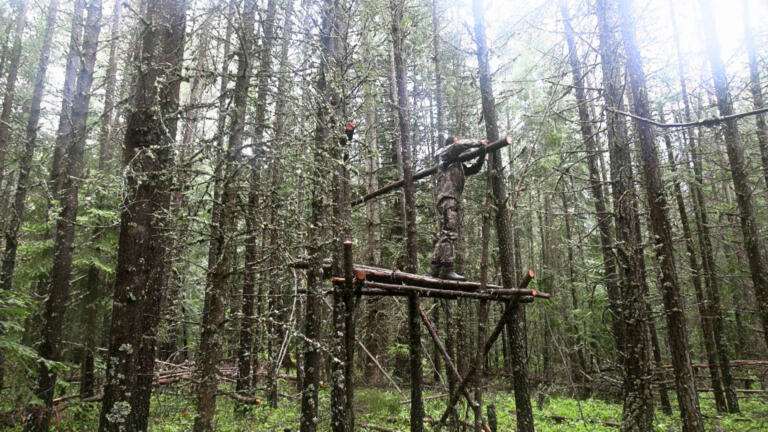 Three participants have to build a Bushcraft Bridge in three days using just a few simple tools.
