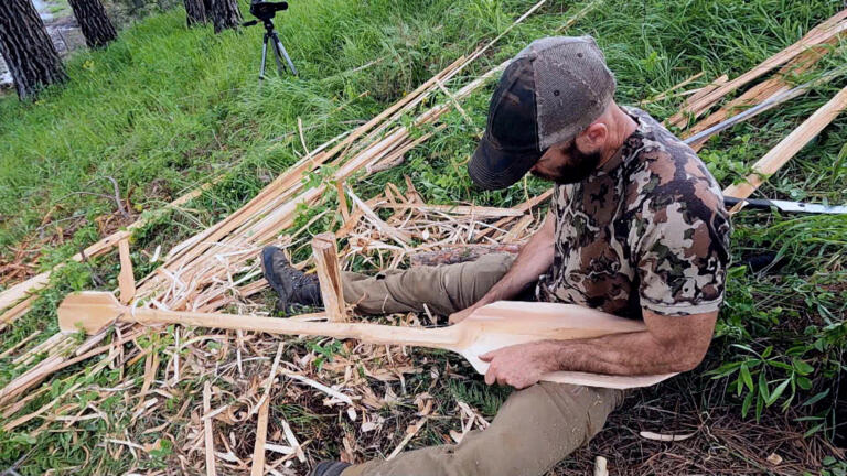 Britt Ahart, Jordan Jonas, and Lucas Miller must build a massive deadfall trap with simple tools.