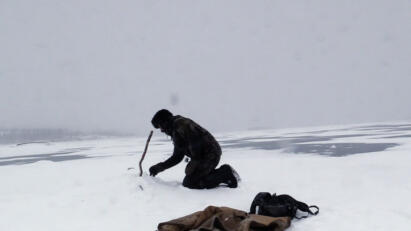 As temperatures drop, the lake freezes and threatens the safety of the survivalists.