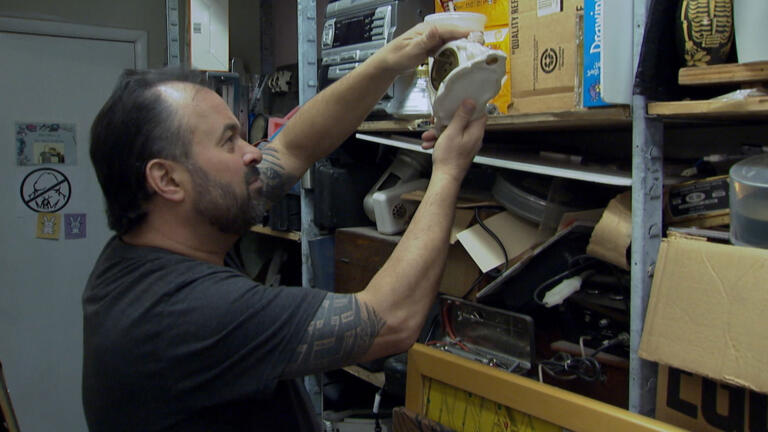 Mike and Frank search for items worthy of display in a man cave.