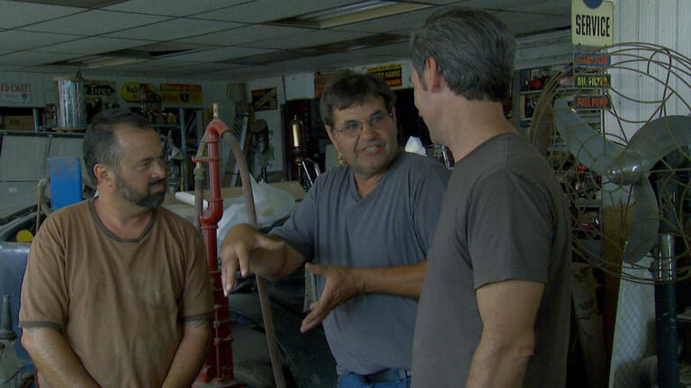 Mike and Frank stumble upon a labyrinth of curious finds; the guys tour a vintage car company.