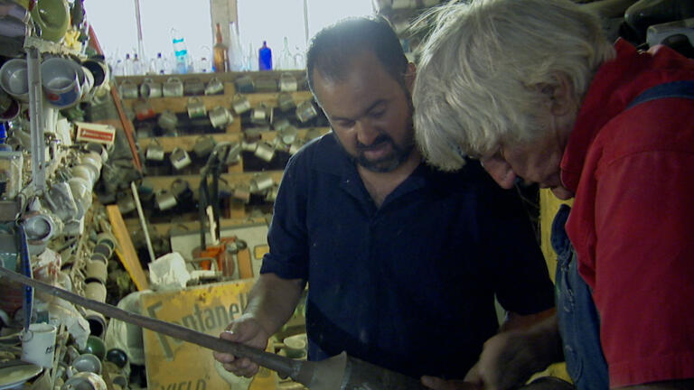 Mike and Frank meet an octogenarian artist; the guys visit a sprawling junkyard.