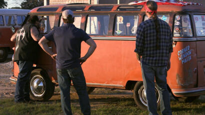 The guys get to work transforming a 1960 Volkswagen Bus into a high-end luxury beach cruiser.