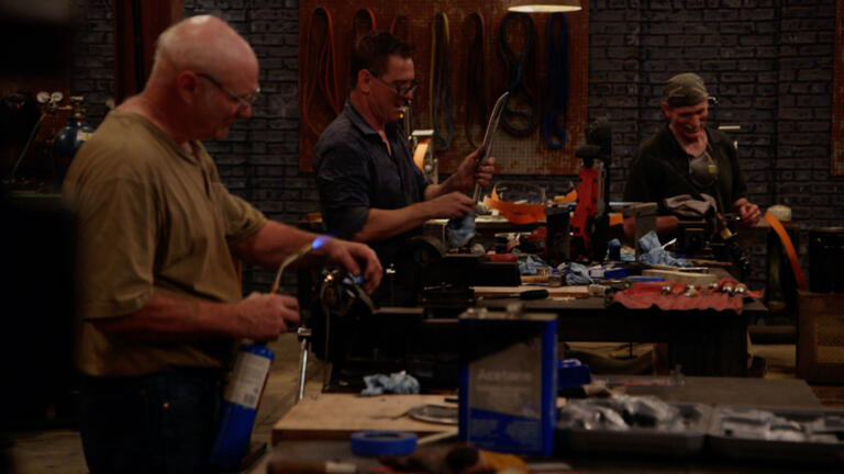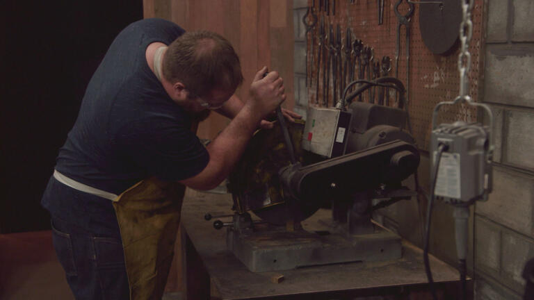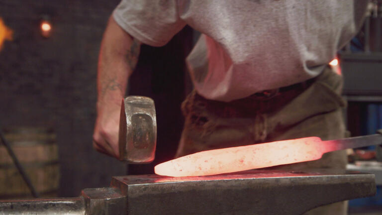 Four bladesmiths must craft a signature blade from a massive piece of elevator cable.