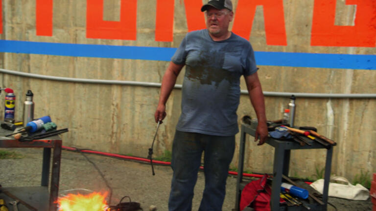 The bladesmiths are tasked with forging a combat knife from an anti-tank hedgehog.