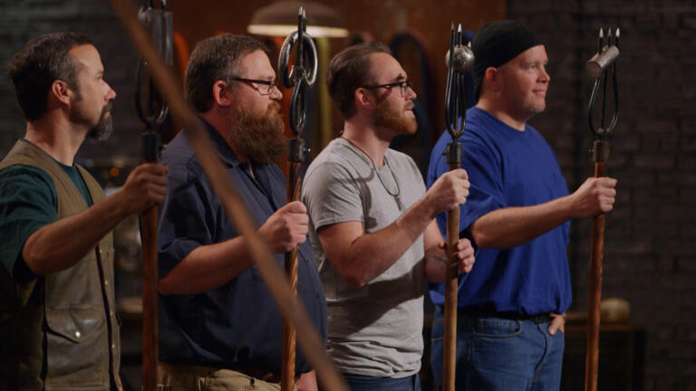 Smiths must forge functional friction folders; two finalists must re-create a Japanese trident.