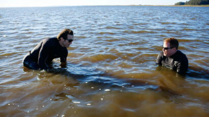 Lenny and Gerrard make a discovery in an aircraft hangar; Mike and James scan an Austrian lake.