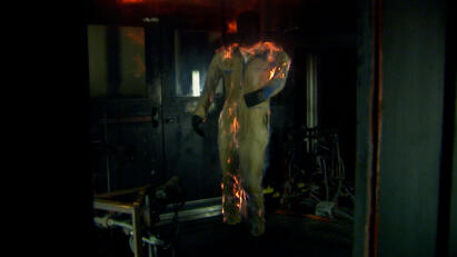 Pyroman the life-size mannequin is exposed to more than 1,000 degrees F.