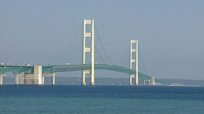 One of the longest suspension bridges in the world connects upper and lower peninsulas of Michigan.