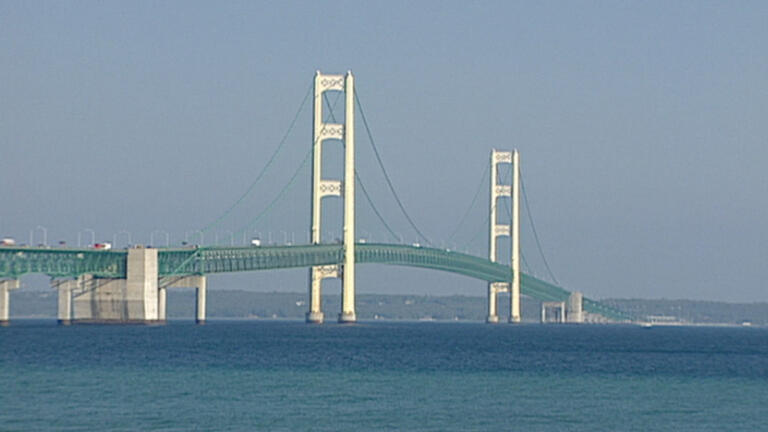 One of the longest suspension bridges in the world connects upper and lower peninsulas of Michigan.