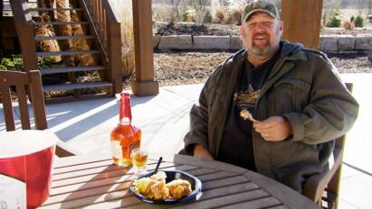Larry tries his hand at mud bogging; tearing down a whole house by hand; Bubba Blackwell.