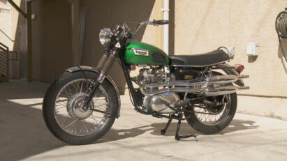 A 1969 Triumph Motorcycle; the first issue of MAD Magazine; a 1800s Parker Brothers shotgun.