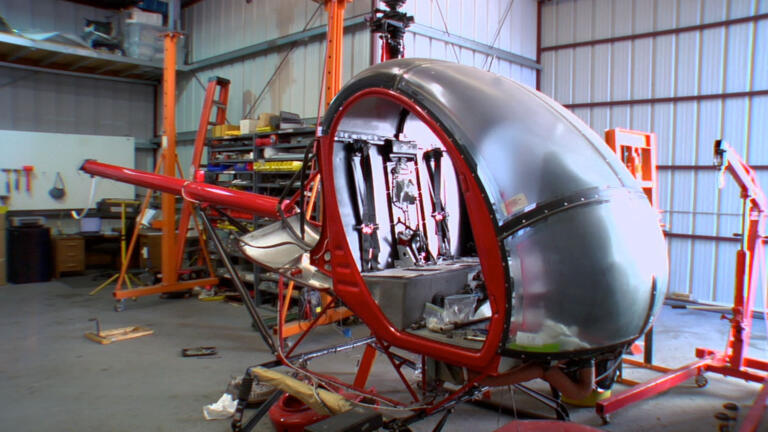 A pirate's peg leg is brought to the shop; archery bow; full-size motorcycle hand-carved from wood.
