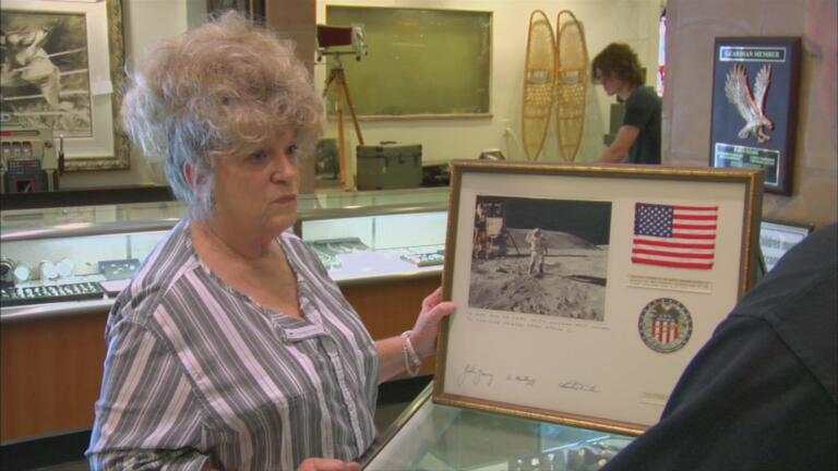 A flag from one of NASA's final moon missions; Rick is presented with an 1861 Civil War Colt musket.
