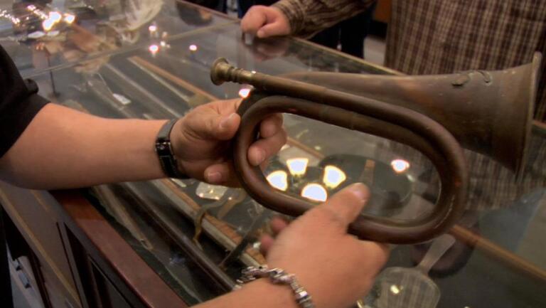 The Pawn Stars have an opportunity to buy an 1875 Remington pistol; Rick and a Civil War bugle.