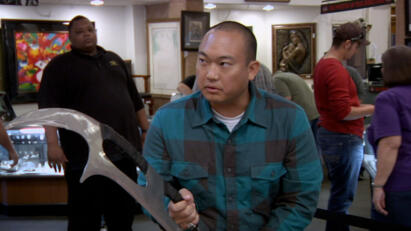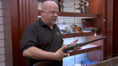 A mysterious rifle is brought into the shop; a signed print by Leroy Neiman; sports pin collection.