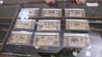 A collection of paper money from the Republic of Texas; an old vs. new rifle-shooting competition.