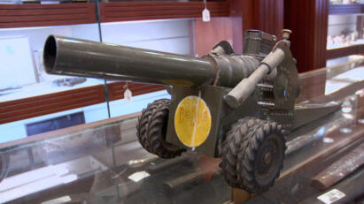 A rare three-trigger Stevens shotgun; movie camera used during WWII; Abraham Lincoln campaign token.