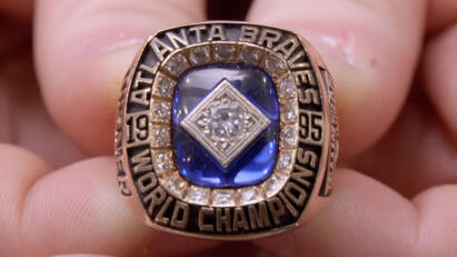 A World Series ring from the 1995 Atlanta Braves is brought into the shop; a Sho-Bud steel guitar.