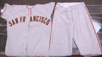 A taxi from "Free Jack"; a San Francisco Giants uniform owned by Willie Mays; brass hand cannon.