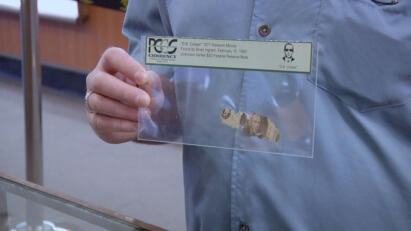 A seller presents the guys with rare $1 and $5 bills from the 1800s; Big Bang Cannon.