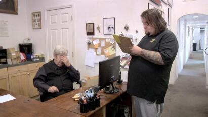 The guys check out a postcard signed by legendary boxer Jack Johnson; Chum decides he needs a desk.