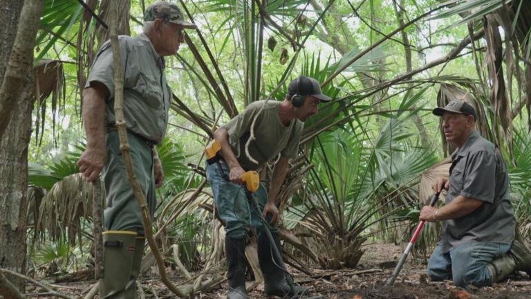 Troy and team discover evidence of an ancient civilization in the swamp.