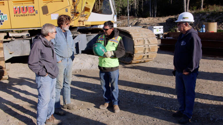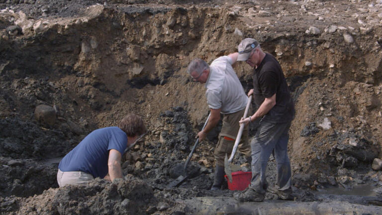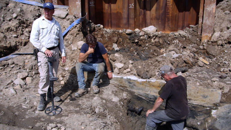 The team is determined to excavate under the giant crane pad in Smith's Cove.