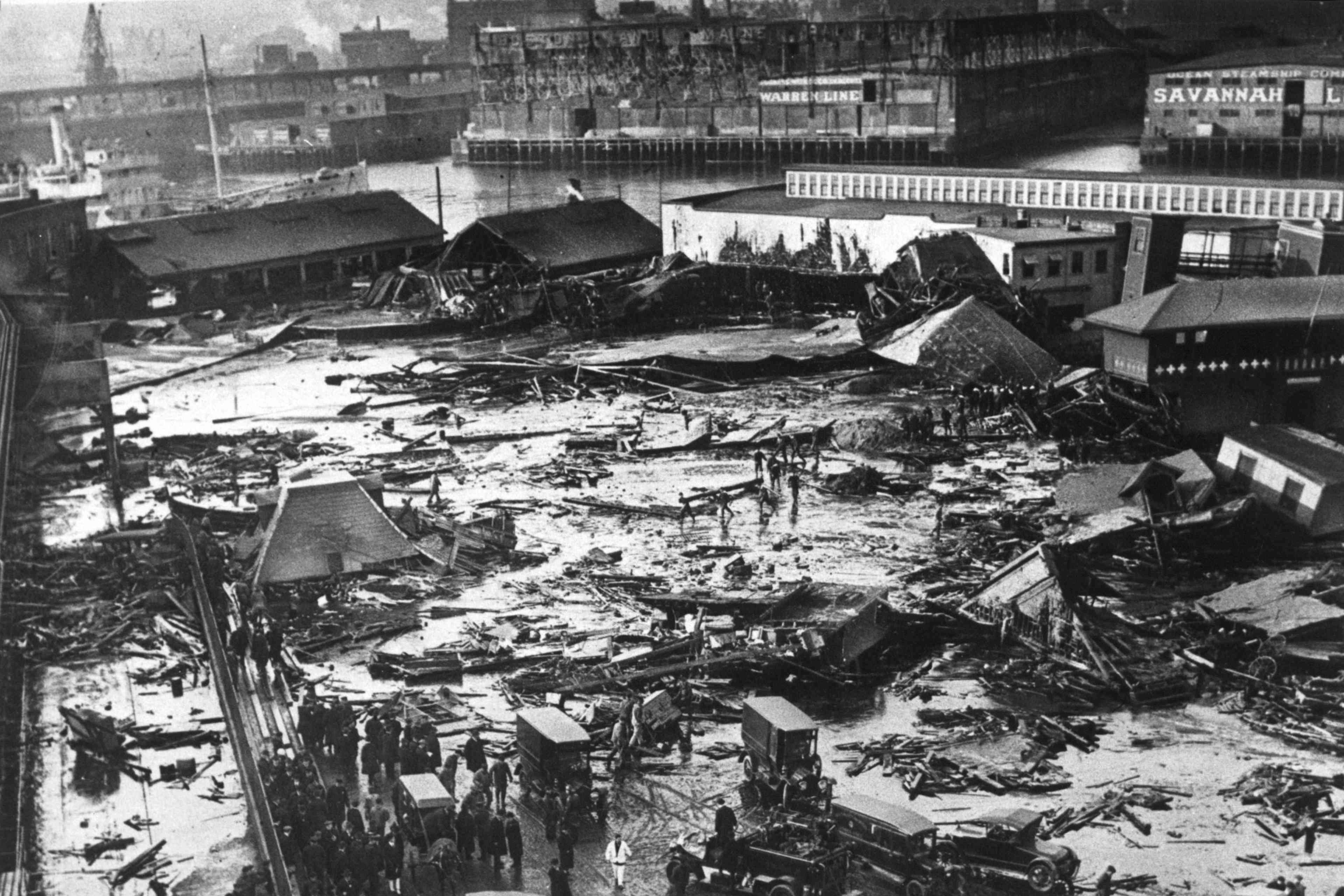 Suddenly, the bolts holding the bottom of the tank exploded, shooting out like bullets, and the hot molasses rushed out. An eight-foot-high wave of molasses swept away the freight cars and caved in the building’s doors and windows. The few workers in the building’s cellar had no chance as the liquid poured down and overwhelmed them.